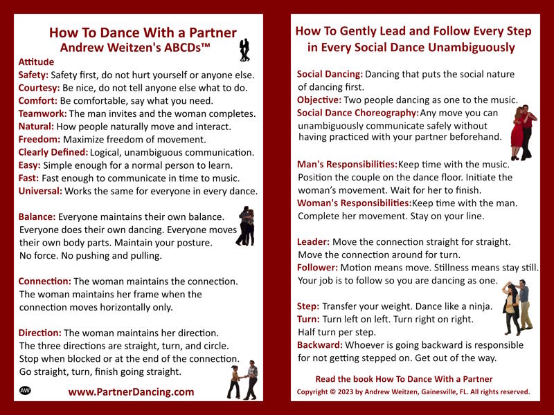 Attendees receive a beautiful, laminated card with Weitzen's ABCDs of How To Dance With a Partner.
